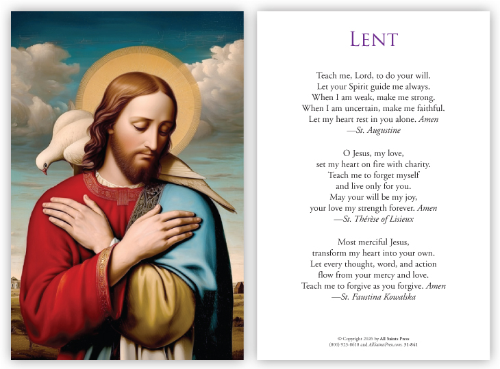 Prayer Cards feature classic artwork backed with prayers appropriate for the occasion. Printed on an extra thick coated card stock, these extra large, 4" x 6" cards are a great and inexpensive way to recognize the special landmarks of the season.