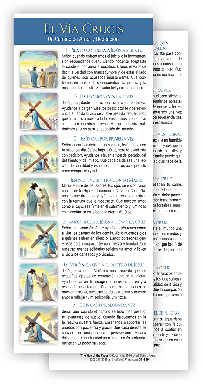 The Stations of the Cross is a revered traditional devotion for the Lenten season. This conveniently formated handout card is designed to facilitate reflection on the paschal mystery and also contain a prayerful reflection for each of the stations. Also available in English. Order Code 31-141